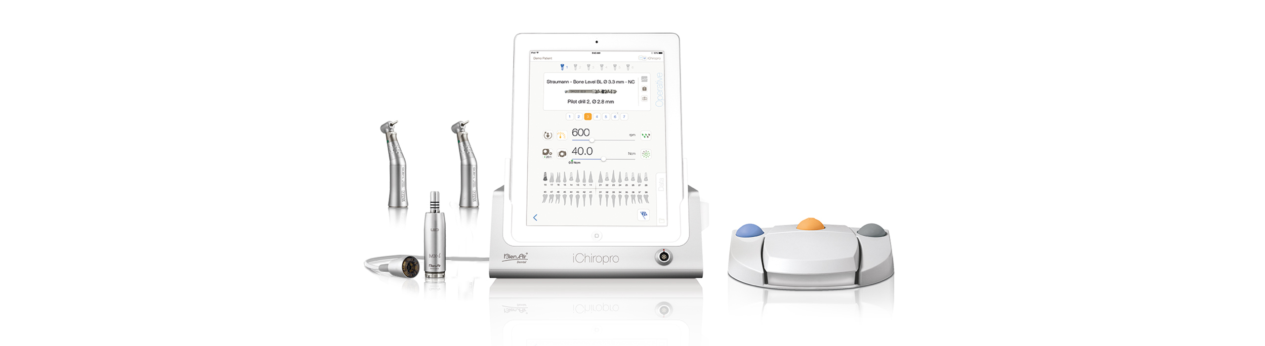 Implantologi er en krævende disciplin. For at tilbyde dig maksimal komfort og for at garantere det for dine patienter, har Bien-Air skabt højtydende systemer, der ikke overlader noget til tilfældighederne. Bien-Air iChiropro og Chiropro fysiodispensere tilbyder komfort, ydeevne og alsidighed. Kombineret med fremragende instrumenter og mikromotorer kan de betragtes som et benchmark.