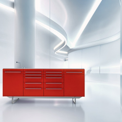Moderne dentalkabinetter med et bord der kan udtrækkes fra kabinettet.