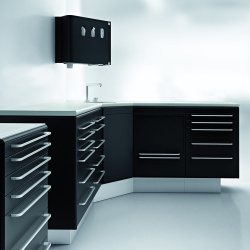 Moderne dentalkabinetter med et bord der kan udtrækkes fra kabinettet.