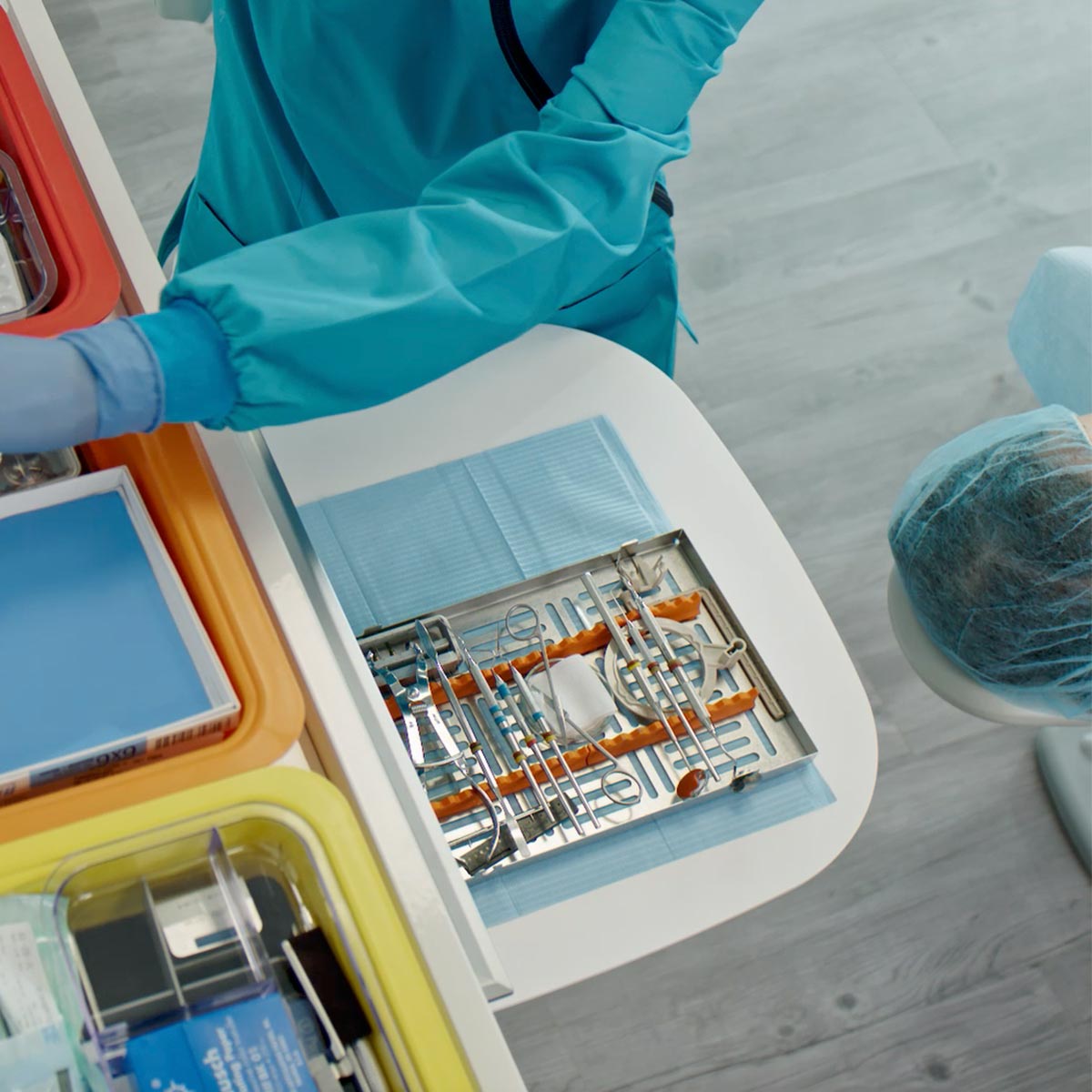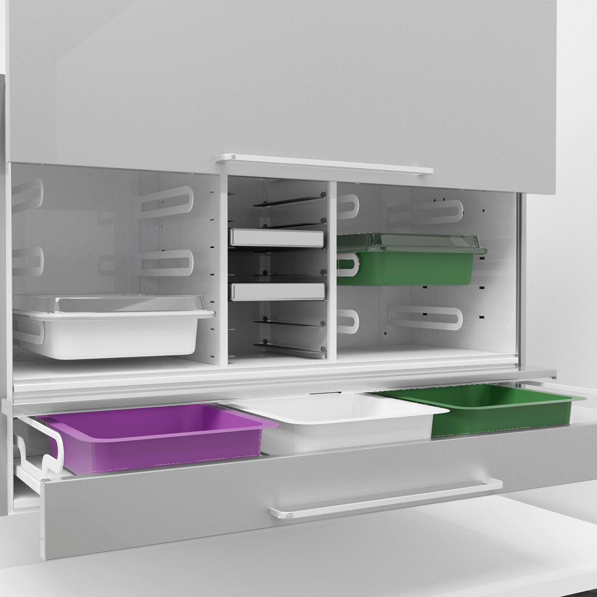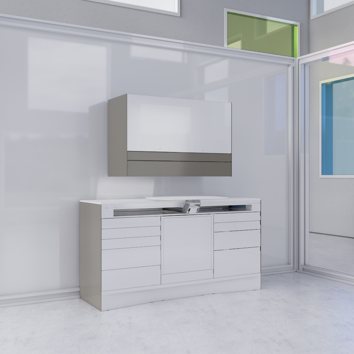 Dette er kun et udkast til en sammensætning på klinikinventar. DentalArt har utallige muligheder og farver ser kan sammensættes præcis efter den enkelte kliniks behov.