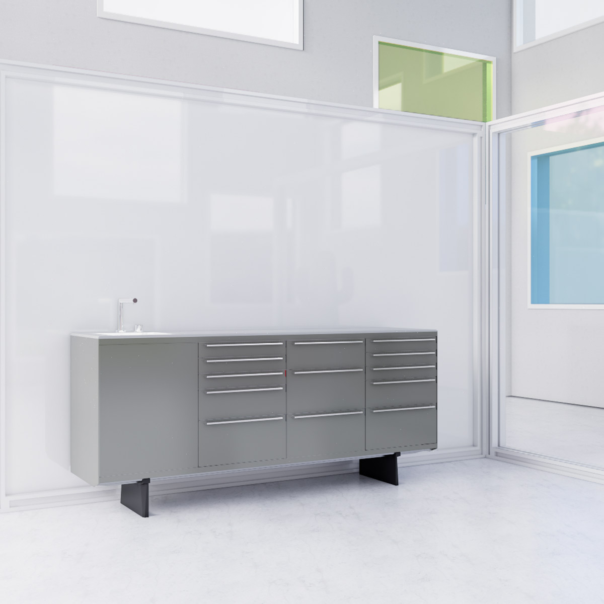 Dette er kun et udkast til en sammensætning på klinikinventar. DentalArt har utallige muligheder og farver ser kan sammensættes præcis efter den enkelte kliniks behov.