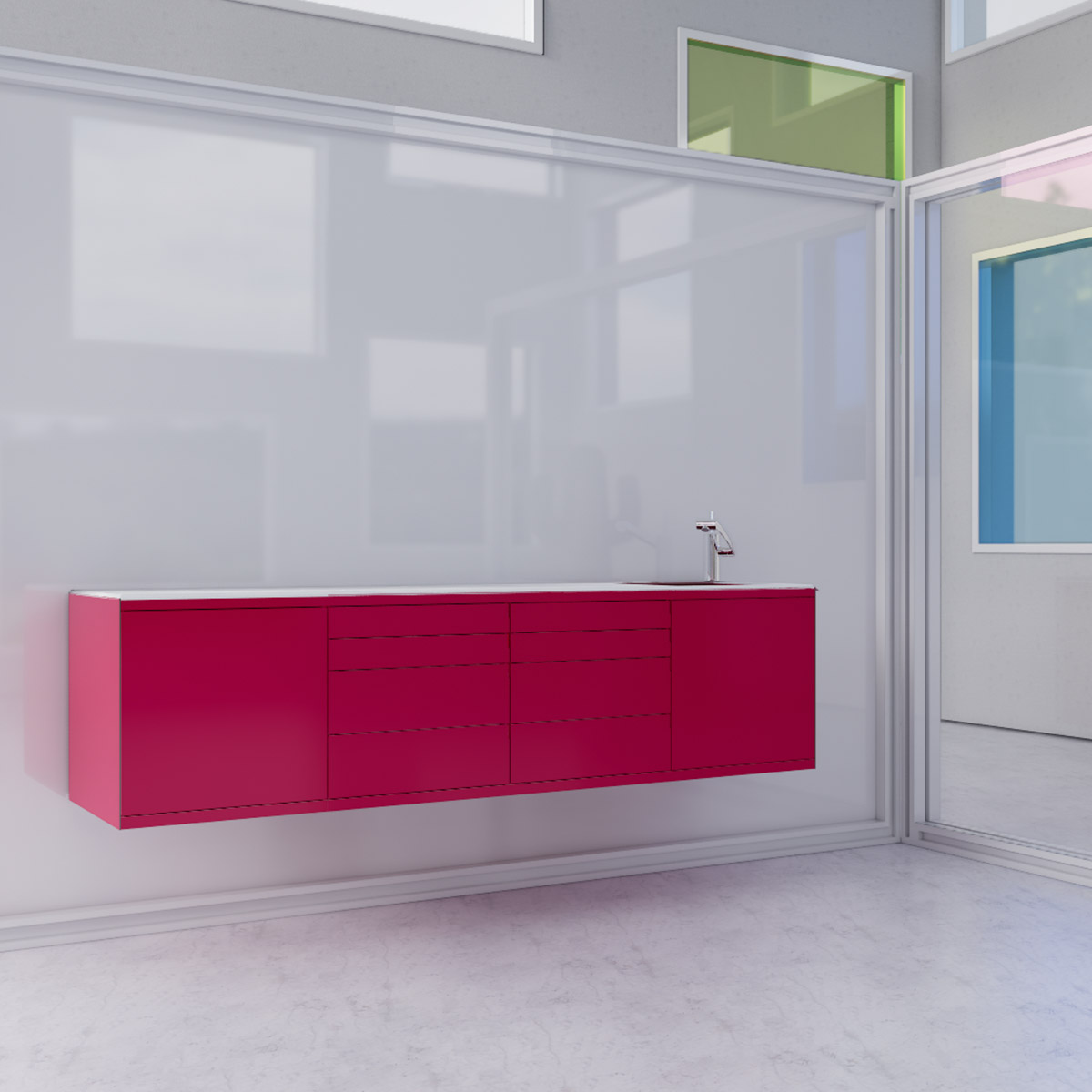 Dette er kun et udkast til en sammensætning på klinikinventar. DentalArt har utallige muligheder og farver ser kan sammensættes præcis efter den enkelte kliniks behov.