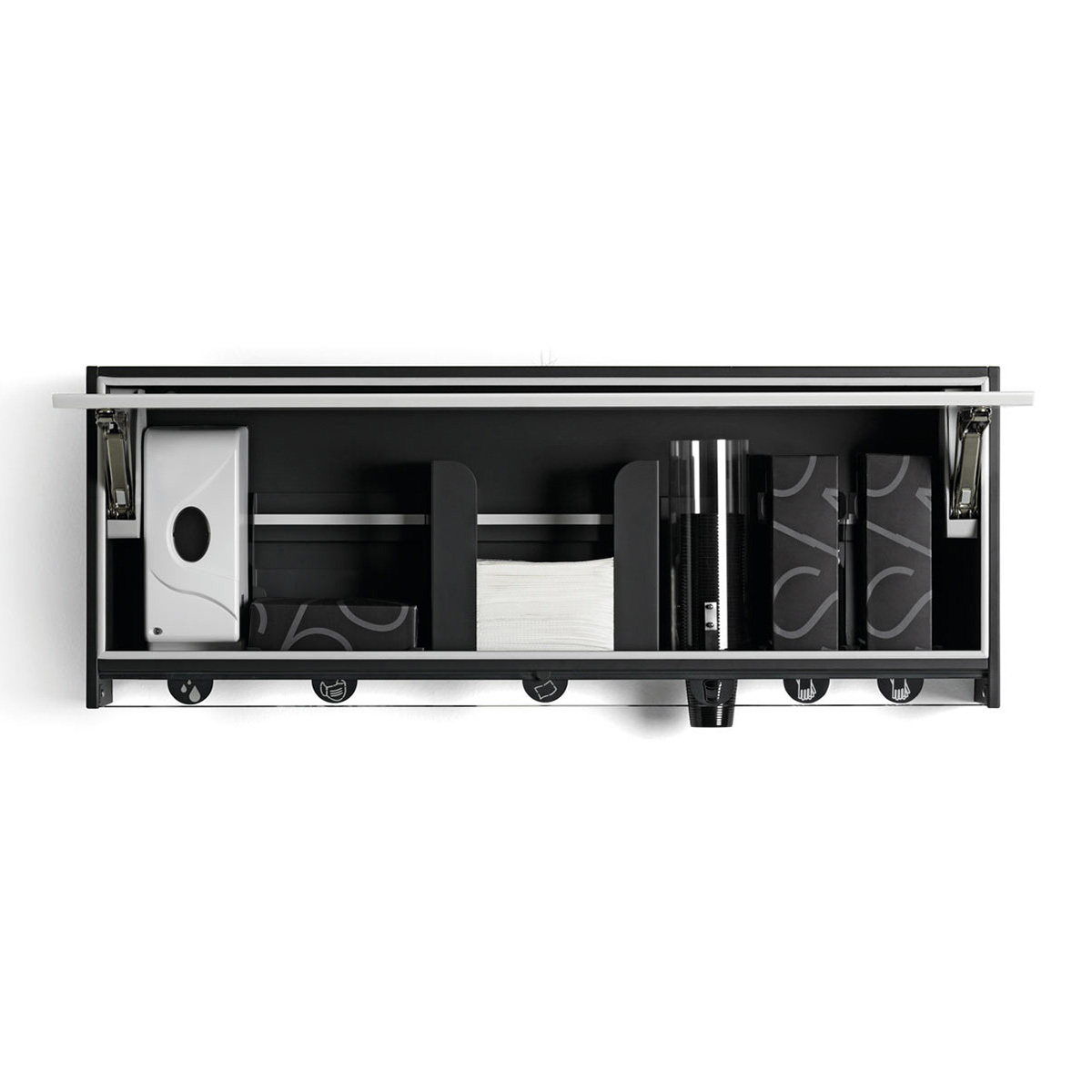 Indhold:Infrarød dispenser til sæbe og desinfektionsmiddel, masker, servietter, kopper, dispenser til to handsker.