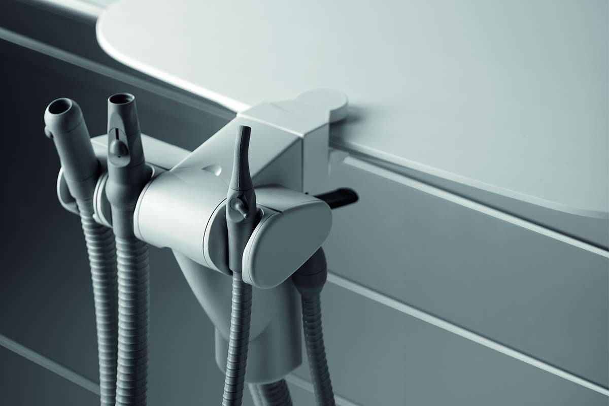 Med flexclip® er sugesystemet ikke længere placeret inde i tandlægestolen, men er integreret i kabinettet og hægtet på bakken, flexclip® følger dens bevægelse og forbedrer ergonomi, fleksibilitet og alsidighed. Sugesystemets slanger er integreret og grupperet sammen inde i skabet. Flexclip® er kompatibel med de førende sugesystemer på markedet.