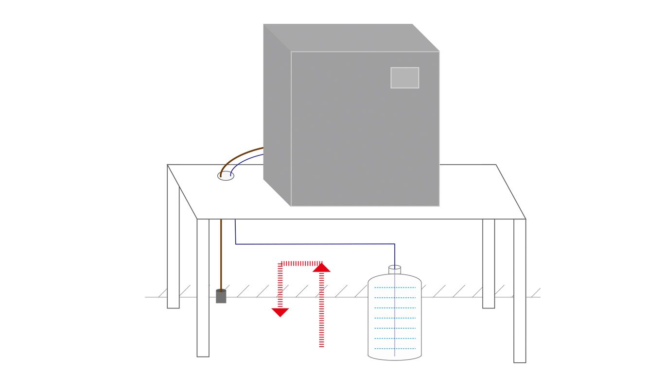 Med ekstern vandtank tilføres destilleret vand automatisk fra eksterne vandbeholdere. Efter en cyklus er der ikke behov for at rense vandtanken og tømme spildevandet regelmæssigt.
